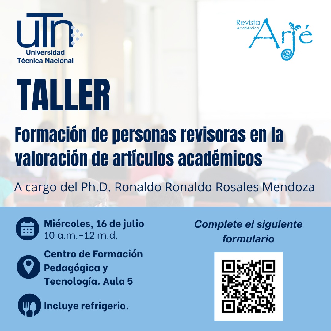 Si desea capacitarse como persona revisora de artículos científicos, le invitamos a cursar el taller «Formación de personas revisoras en la valoración de artículos académicos». Este sería el enlace para que se incriba. https://forms.gle/HpNsP11jkX9VKuF96